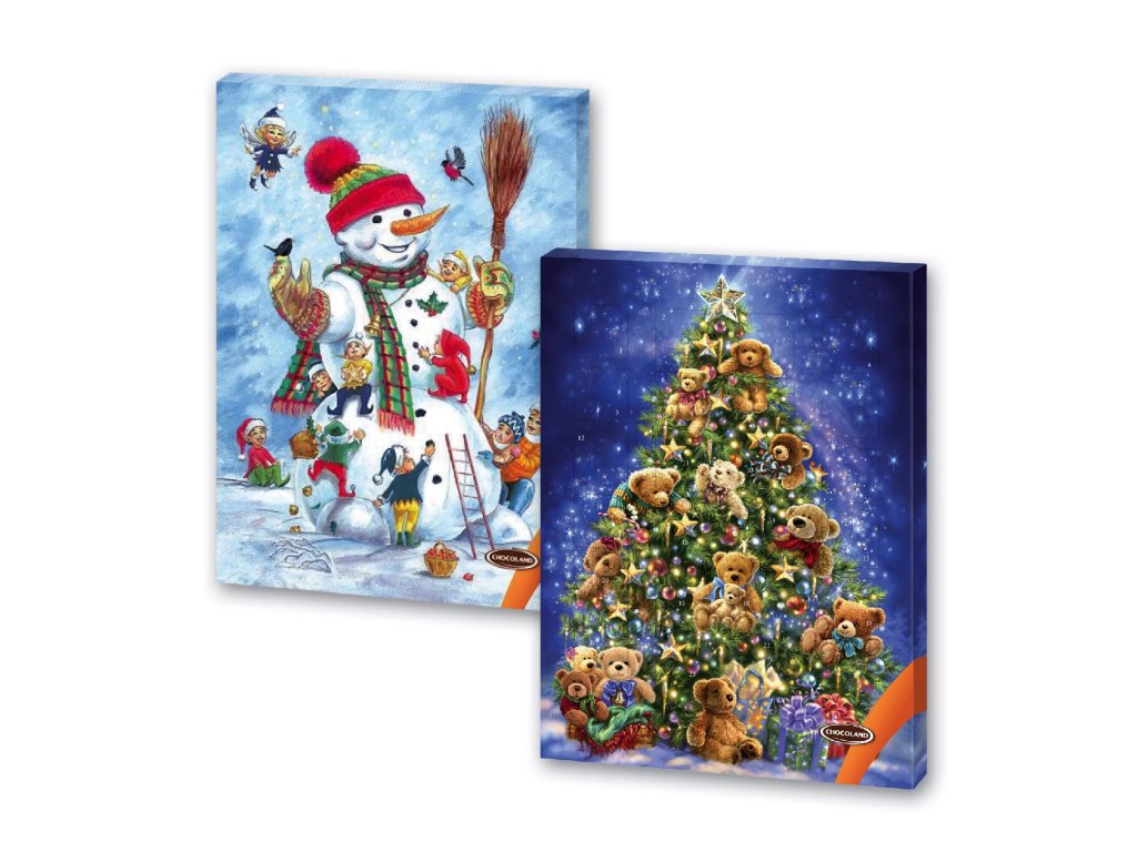 Oblíbené dětské kalendáře pro děti s motivem vánočního stromečku a roztomilých plyšových medvídků či roztomilého sněhuláka zpříjemní dětem čekání na Štědrý den. Za každým okénkem se ukrývá kousek jemné mléčné čokolády, která potěší malé mlsouny každý den. Tyto kalendáře si svou popularitu drží už řadu let a patří k našim nejprodávanějším.