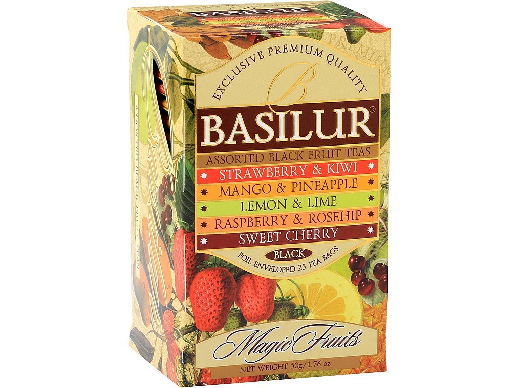 Exklusivní černé čaje s ovocnou příchutí. Vyberte si jahodový, citrónový, mangový či višňový. Silná chuť čaje a vůně ovoce Vás okouzlí