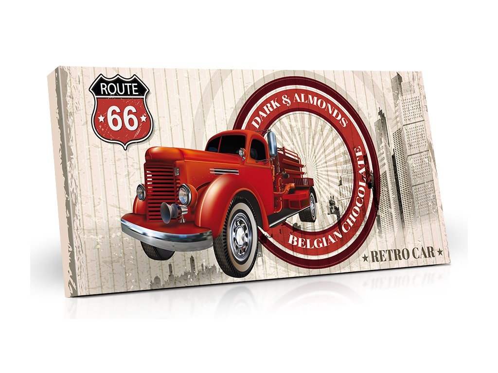 Hořká čokoláda s mandlemi v obale s motivem červeného auta