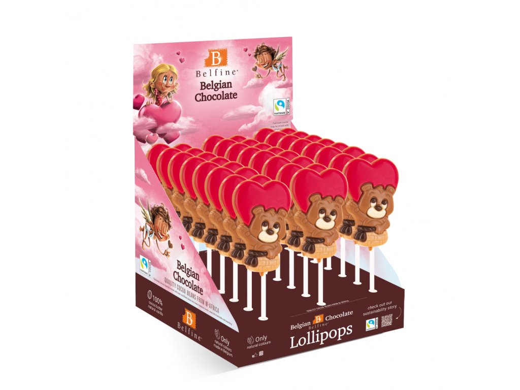 Belgian Belgické čokoládové lízátko Medvídek se srdíčkem 25g 24ks