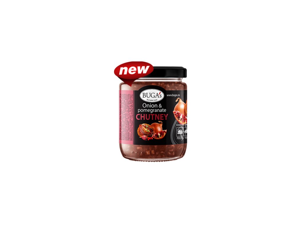 Složení: 2,5% sušené cibule, což odpovídá, 11% čerstvé cibule, cukr, 10% koncentrovaná šťáva z granátového jablka, mletý sladký pepřičkí, jablečný ocet, řepkovýolej, 1,5% granulovaný česnek, mletý chilli pepřičkí, sůl, zahušťovadlo xanthan guma, kyselost regulátor kyselina citronová, konzervační sorban draselný. Výrobek neobsahuje alergeny.