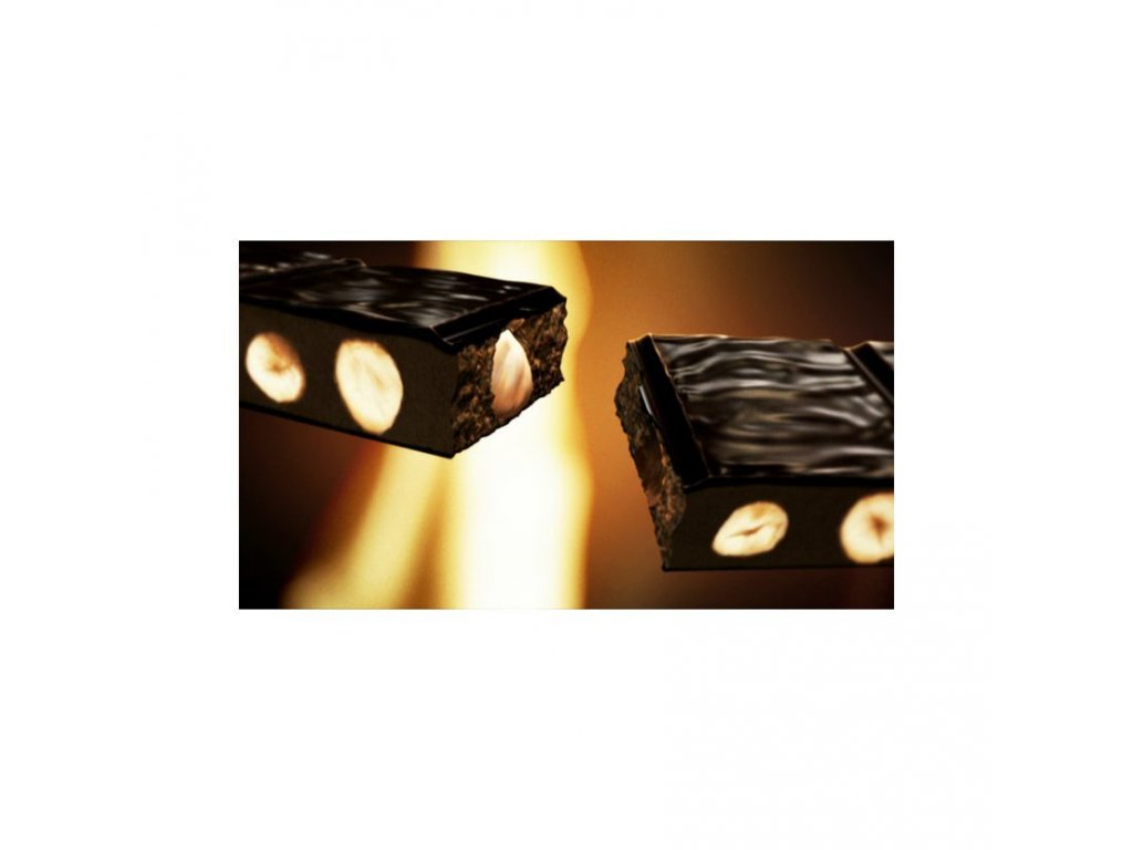 Složení: Cukr, lískové ořechy, kakaová hmota, rostlinný tuk, sušené plnotučné mléko, nízkotučný kakaový prášek, sójová mouka, kakaové máslo, tuku, emulgátor sójový lecitin, vanilin, vanilka. Může obsahovat stopy mandlí. Obsah kakaa min.60%