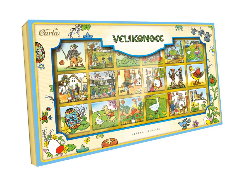 Vyzkoušejte lahodné velikonoční neapolitánky z mléčné čokolády od tradiční české značky Carla. Toto exkluzivní dárkové balení obsahuje 18 kusů jemných neapolitánek, které potěší svou krémovou chutí i krásným velikonočním designem inspirovaným ilustracemi slavného českého malíře Josefa Lady. Každá neapolitánka je vyrobena z kvalitní mléčné čokolády a zabalená do obalu s ladovskými motivy, které evokují tradiční české Velikonoce. Díky tomu je balení skvělým dárkem pro vaše blízké nebo stylovým doplněním velikonočního stolu.