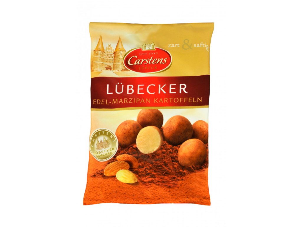Carstens přináší kvalitní marcipánové brambory vyrobené z libeckého marcipánu obalené v nízkotučném kakau. Užijte si dokonalou chuť marcipánu. Nyní více mandlí, méně cukru!