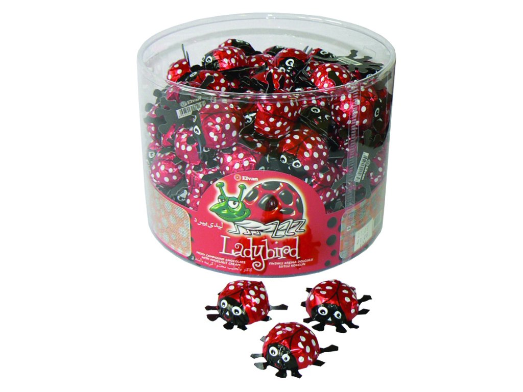 Červená beruška z kakaové pochoutky 8g dóza 100ks