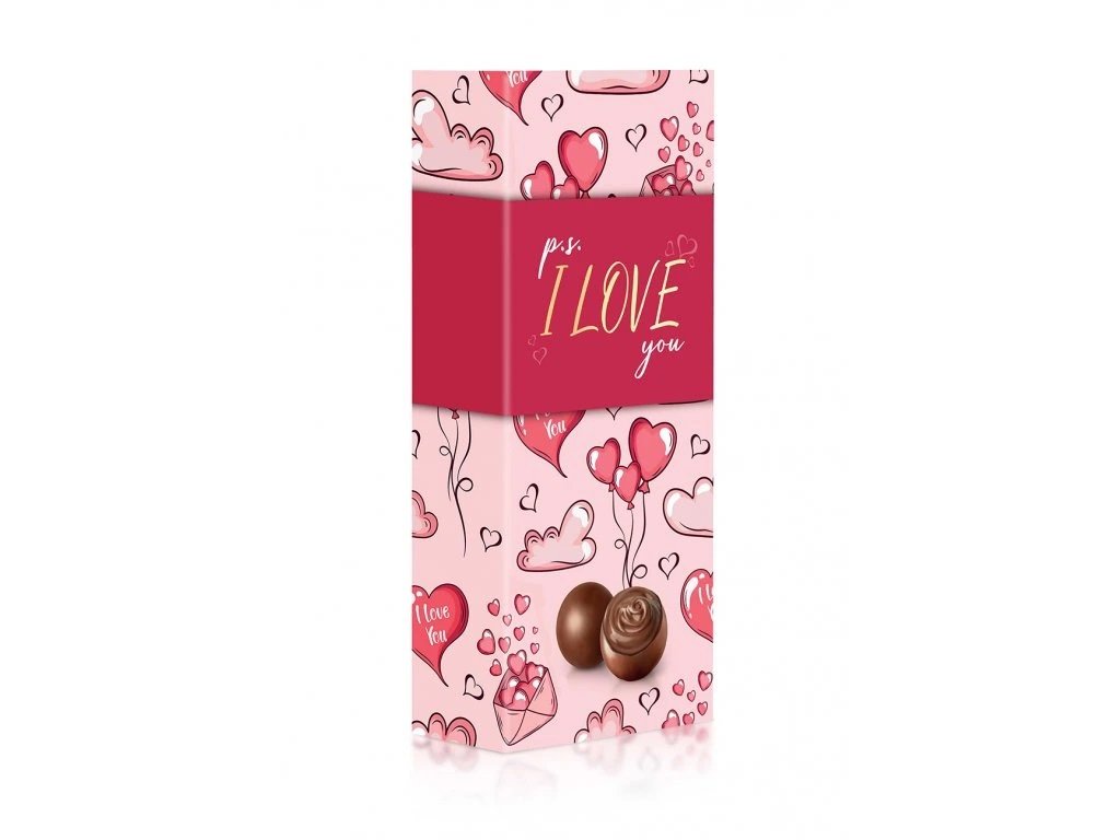 Šest čokoládových pralinek v bonboniéře s nápisem I love you
