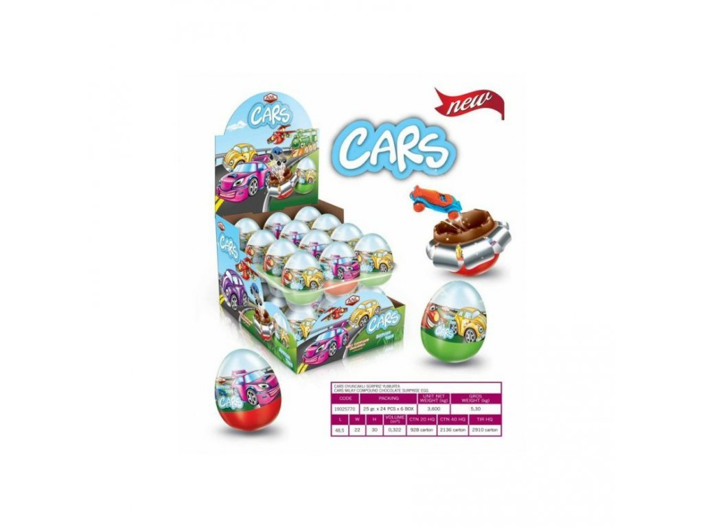 Čokoládové vajíčko s překvapením pro kluky. Vajíčko z mléčné čokolády s překvapením s motivy autíček. Toto vajíčko potěší každého chlapce. Vajíčko je vyrobené z mléčné čokolády a obsahuje překvapení s motivem autíček. Pokud hledáte vajíčko s překvapením za dobrou cenu, je toto určitě skvělá volba