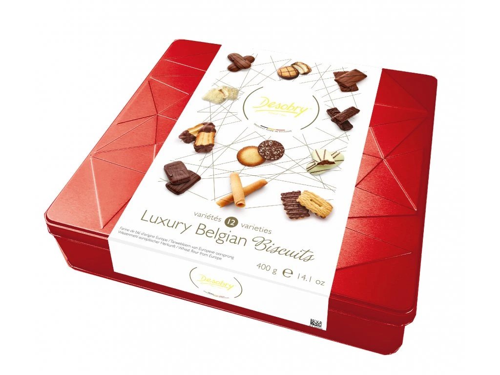 Dopřejte si výjimečný chuťový zážitek s elegantním dárkovým balením belgických sušenek značky Desobry. V luxusní plechové doze najdete 12 různých druhů sušenek, které kombinují lahodné máslové těsto s pravou belgickou čokoládou.