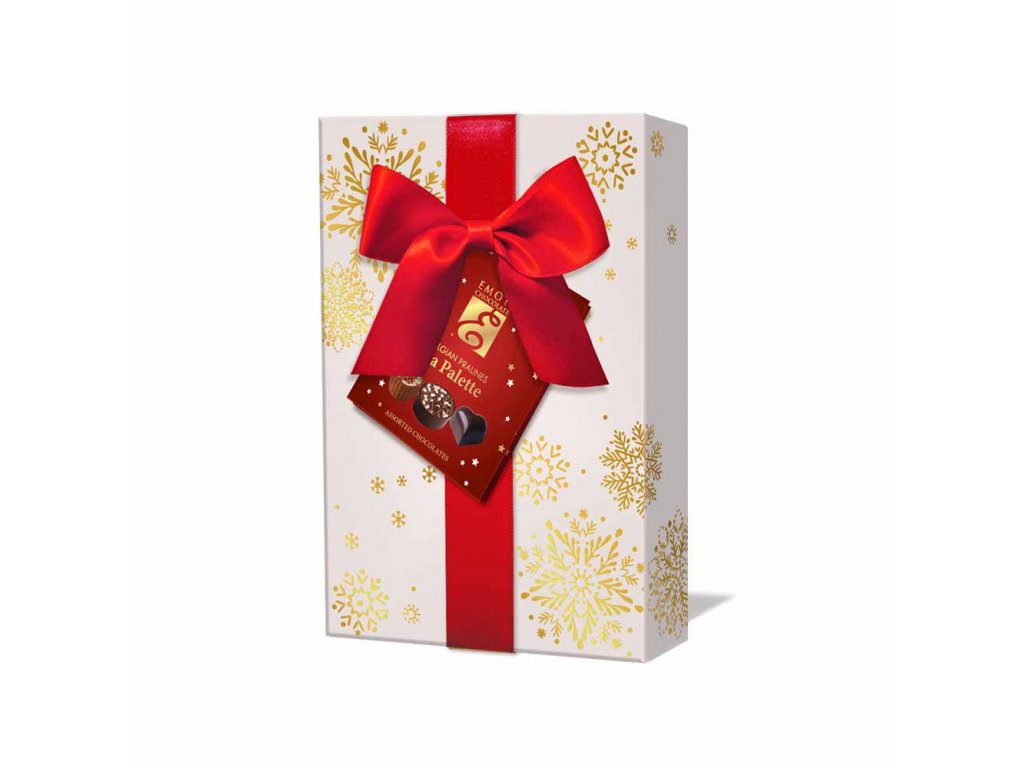 Výběr belgických pralinek La Palette v bílé dárkové krabičce je plné jedinečných kousků pralinek z lahodné čokolády ať už jemné bílé, vynikající mléčné nebo hořké. Lákají svou chutí lískových oříšků, karamelu, jemností lanýžového krému a marcipánu. Nabídněte svým blízkým toto vánoční balení a prožijte společně slavnostní atmosféru vánoc