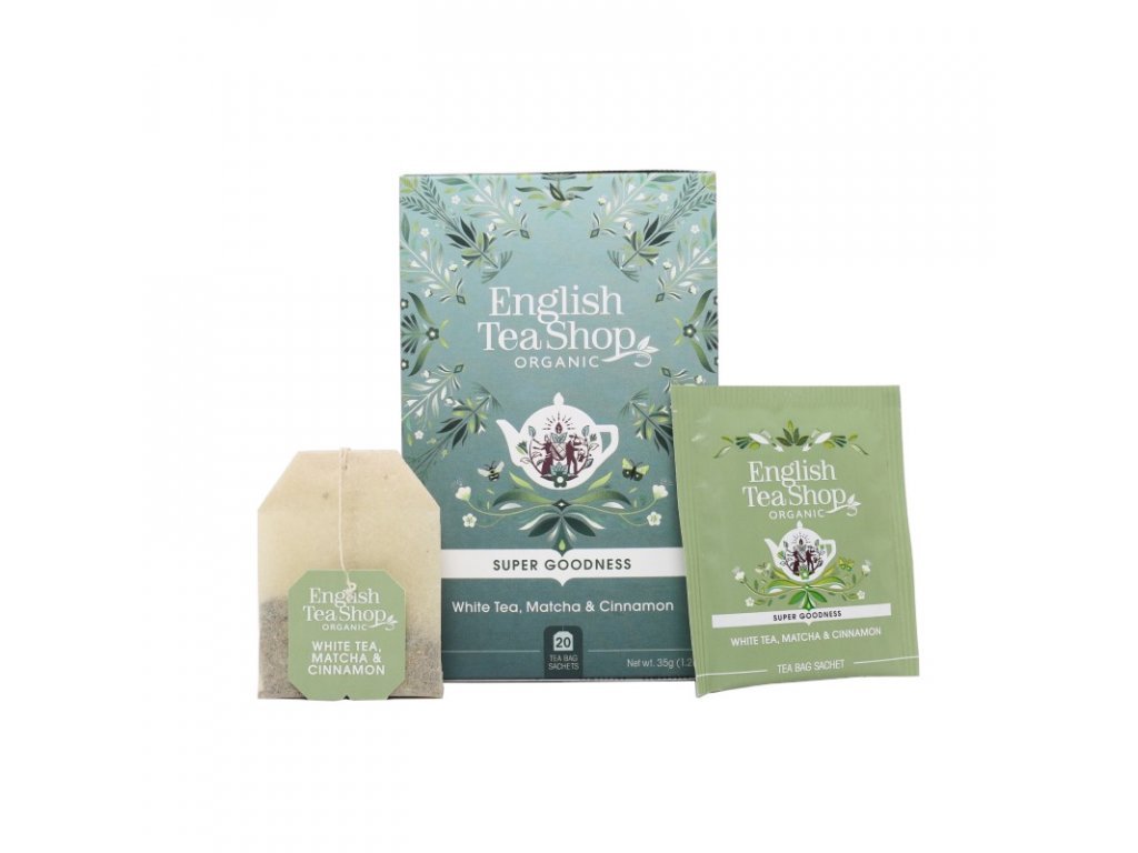 Bílý čaj se skořicí a matchou od značky English Tea Shop v bio kvalitě vás překvapí svou nezaměnitelnou štiplavou chutí. Díky obsahu teinu Vám čaj dodá energii a elán do vašeho dne.