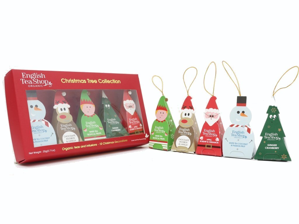 Dárková sada pyramidek Vánoční figurky na stromeček od značky English Tea Shop obsahuje kvalitní čaje v bio kvalitě. Čaje jsou zabaleny v praktický pyramidkách, které se dají zavěsit na vánoční stromeček.