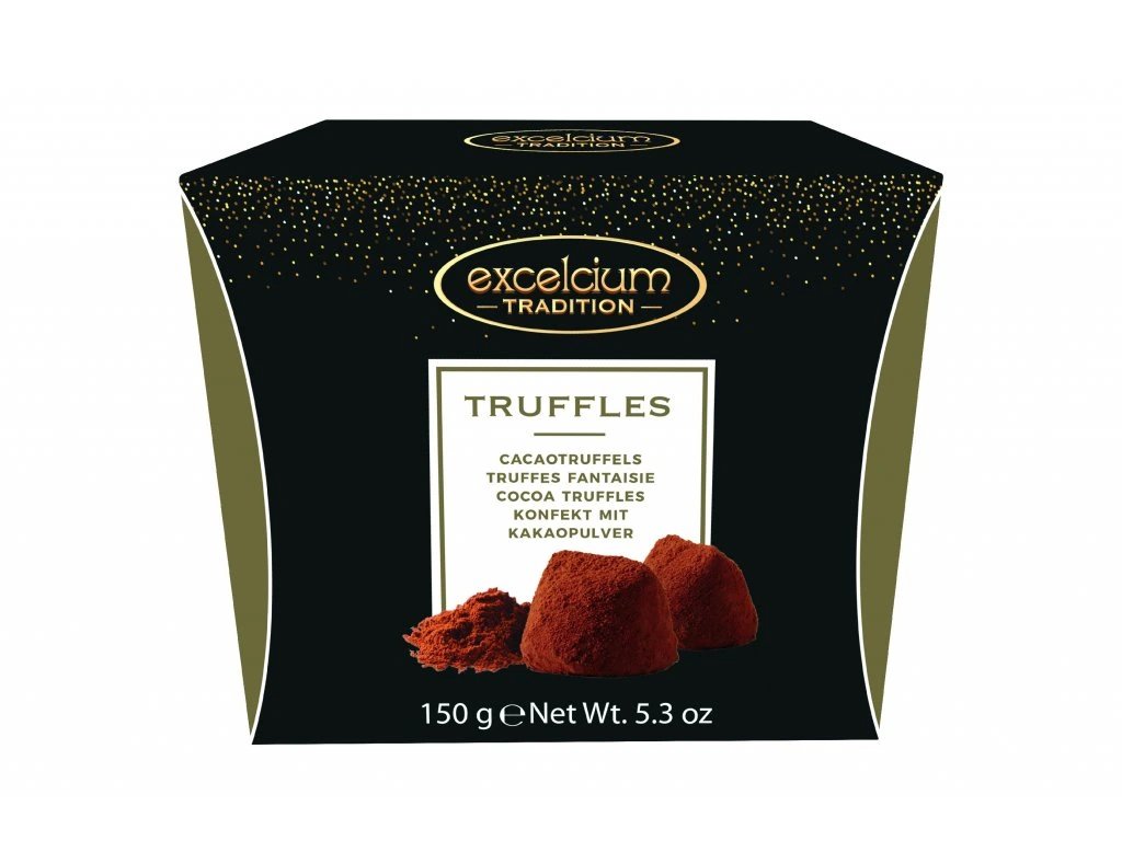 Belgické kakaové truffles v černém obalu potěší kakaovou chutí.