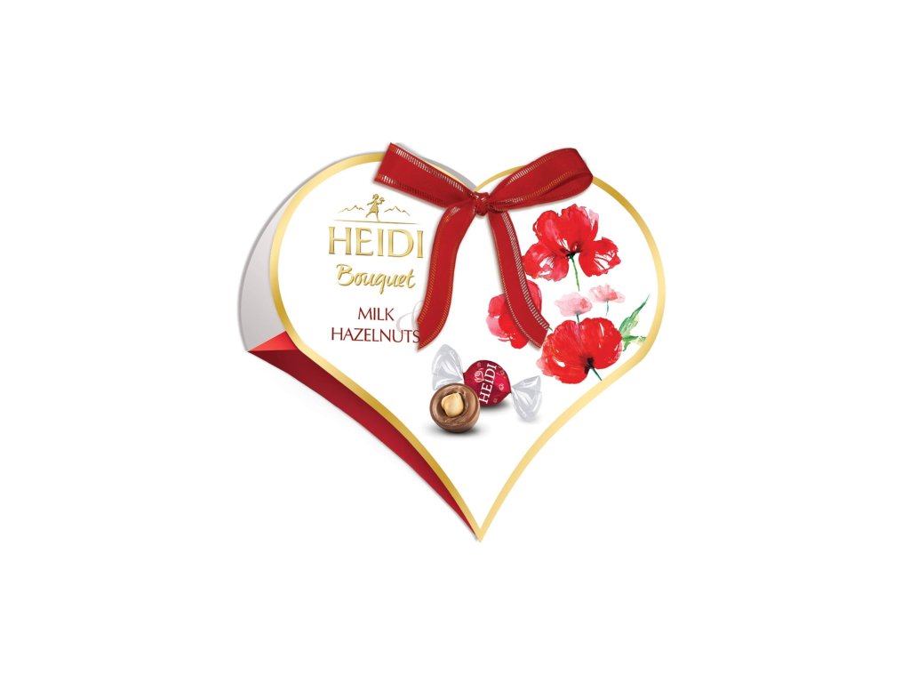 HEIDI Bouquet Milk & Hazelnuts – srdcová bonboniéra