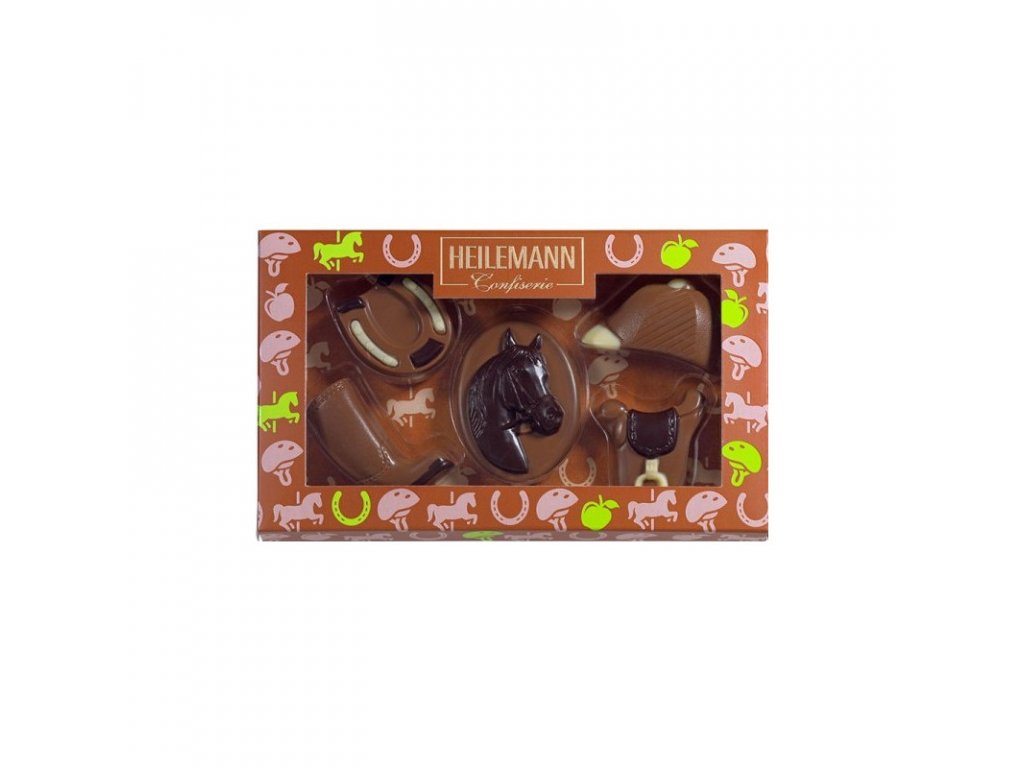 Potěšte milovníky koní touto exkluzivní dárkovou sadou čokolády s motivem koní. Sada obsahuje čokoládové figurky koní z kvalitní mléčné čokolády dekorované hořkou a bílou čokoládou. Jedinečná dárková sada potěší svou chutí každého gurmána. Čokoládová kazeta koně je ideální jako dárek k narozeninám, svátku nebo jen tak pro radost.