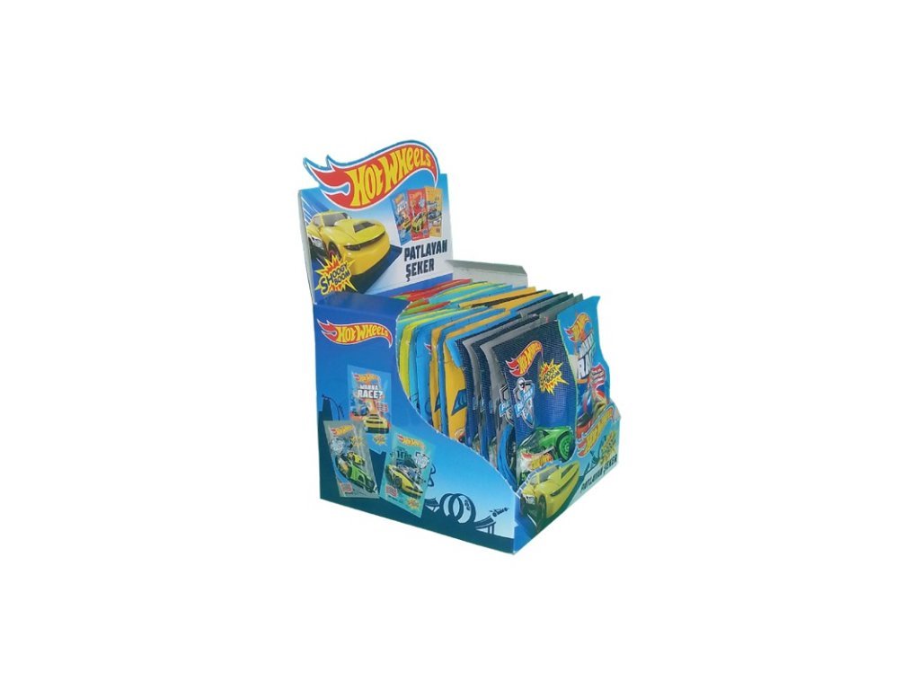 Oblíbený práskací cukr s výraznou jahodovou příchutí v atraktivním balení s motivy závodních aut Hot Wheels potěší malé i velké fanoušky sladkostí a rychlých kol. Každý sáček obsahuje 7 gramů zábavně praskajícího cukru, který při kontaktu s jazykem vytváří jedinečný efekt šumění a praskání – zážitek, který nadchne nejen děti. Display obsahuje 40 jednotlivě balených sáčků s různými motivy Hot Wheels aut, ideální pro prodejny, dětské oslavy nebo jako originální sladkost do dárkových balíčků. Skvělá kombinace zábavy, výrazné chuti a poutavého designu.