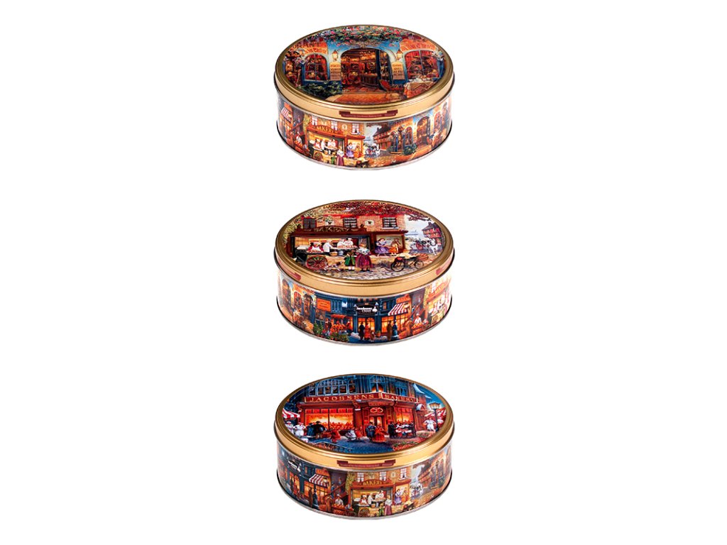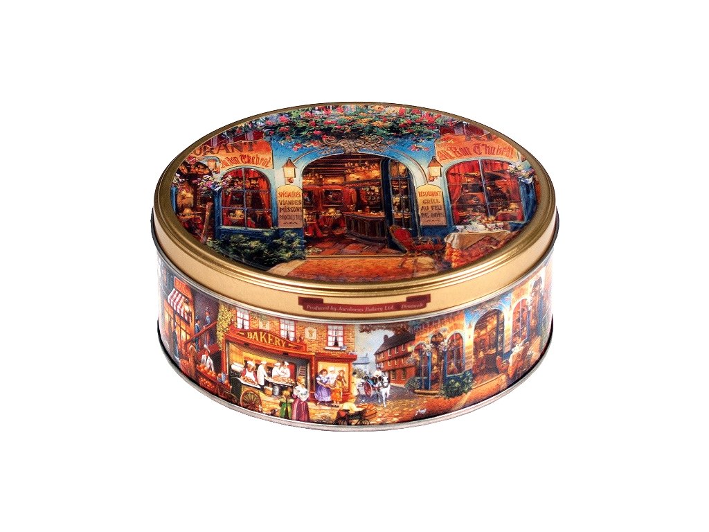 Krásná plechová dóza naplněná máslový sušenkami. Při odběru více kusů vždy mix motivů dle skladové dostupnosti