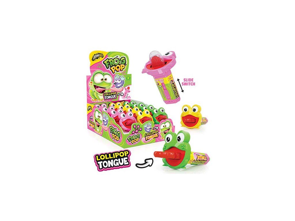 Zábavné, hravé a sladké! JohnyBee Frog Pop je originální lízátko ve tvaru barevné žabky, která vyplazuje jazyk – a tím jazykem je právě chutné ovocné lízátko. Každý kus váží 10 gramů a zaujme nejen chutí, ale i vtipným designem, který baví děti i dospělé. Díky pestrým barvám a roztomilým obličejům žabek je Frog Pop ideálním dárkem, drobností do dárkového balíčku nebo sladkou odměnou. Lízátko má jahodovou příchuť