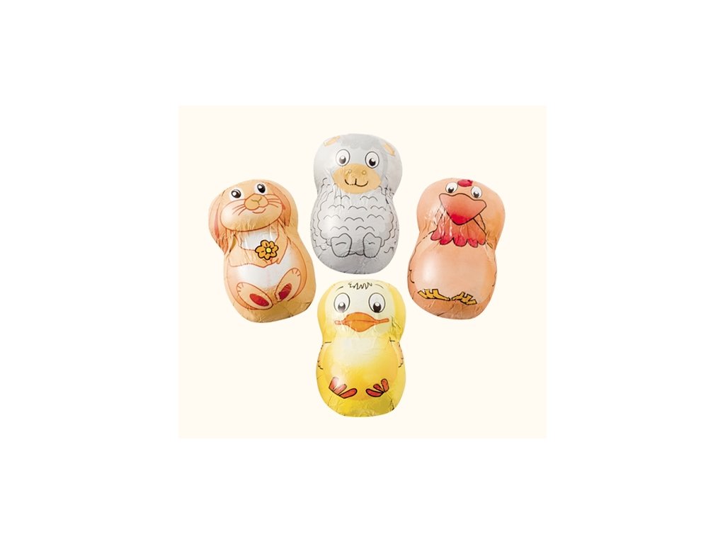 Mléčné čokoládové figurky s motivem zvířátek s nugátovou náplní. Kilové balení obsahuje 100ks figurek