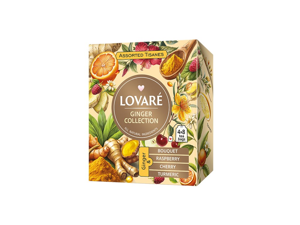 Hledáte dokonalý způsob, jak se zahřát a dodat tělu přírodní energii? Lovare Ginger Collection je exkluzivní výběr čtyř druhů bylinných a ovocných směsí, ve kterých hraje hlavní roli štiplavý zázvor. Tato kolekce je ideální pro milovníky výrazných chutí, kteří oceňují 100% přírodní složení bez umělých aromat.