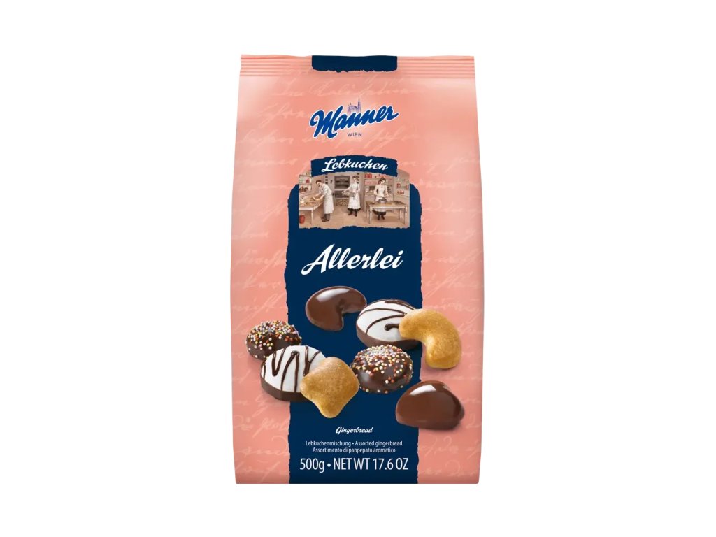 Užijte si chvíle pohody s tradičními Manner Lebkuchen Allerlei – výběrovou směsí měkkých perníčků, které potěší nejen chuťové buňky, ale i oči. V balení najdete rozmanité tvary a druhy perníčků, z nichž některé jsou zdobené, jiné pokryté lahodnou čokoládovou nebo cukrovou polevou. Každý kousek je pečlivě připraven podle tradiční rakouské receptury, která zaručuje jemnou, vláčnou konzistenci a bohatou chuť perníkového koření. Ideální jako pochoutka ke kávě, pro návštěvy nebo jako sladké potěšení během dne