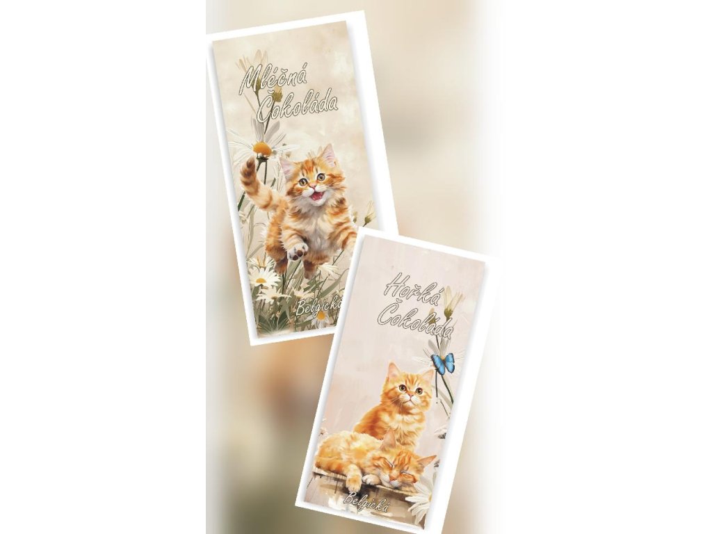 Belgická mléčná nebo hořká čokoláda s motivem roztomilých kočiček