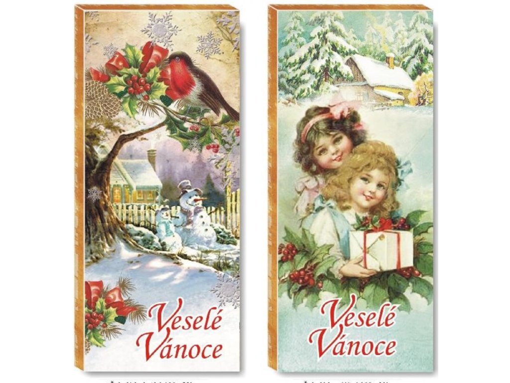 Hořká a mléčná čokoláda s krásnými motivy Vánoc. Při odběru více kusů pouze mix motivů