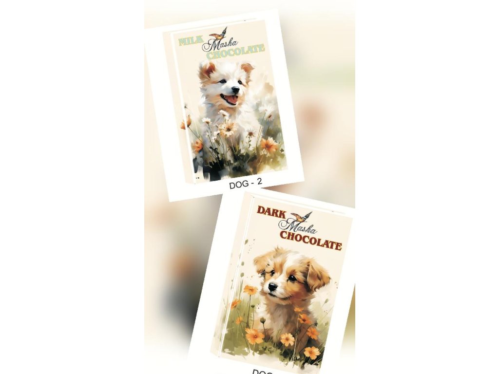 Malá čokoláda v mléčné nebo hořké variantě s obrázkem roztomilých štěnátek. Při odběru více kusů vždy mix obou dekorů