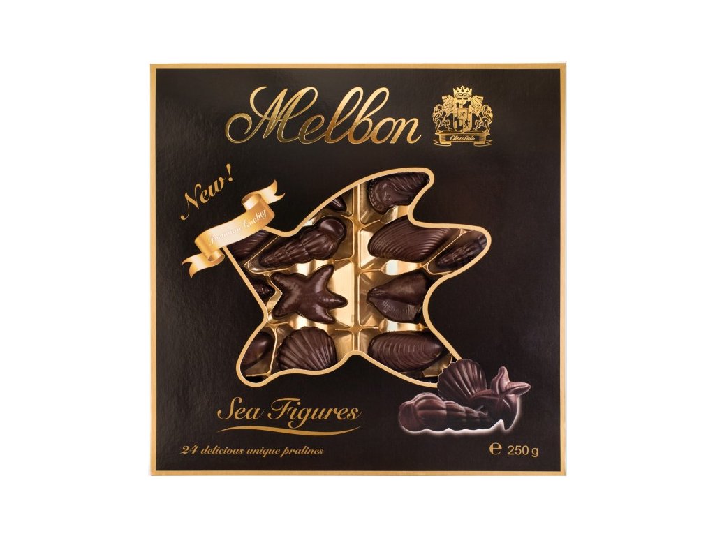 Pociťte dokonalou harmonii při ochutnání pralinky z hořké čokolády s tmavou lískooříškovou náplní. V bonboniéře najdete pralinky v osmi různých tvarech mušlí či plodů moře. Našli jste skvělý dárek pro milovníky hořké čokolády.