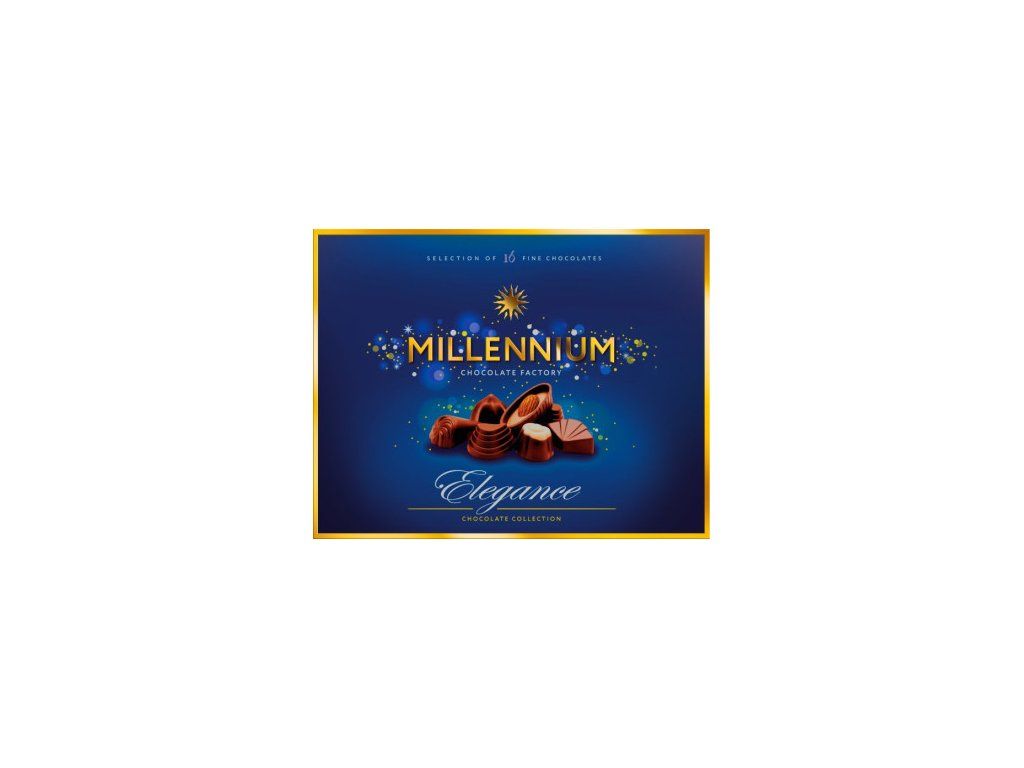 Millennium Elegance 143g je luxusní bonboniéra, která potěší všechny milovníky prvotřídní čokolády. Tato elegantní modrá krabička ukrývá sedm druhů lahodných pralinek, z nichž každá je mistrovským spojením jemné čokolády, cappuccino náplně, jogurtové či bohaté oříškové náplně. Každá pralinka je pečlivě vyrobená z kvalitních surovin a nabízí jedinečnou chuťovou harmonii, která pohladí vaše smysly. Millennium Elegance je ideálním dárkem pro zvláštní příležitosti nebo luxusním požitkem pro chvíle sladkého potěšení.