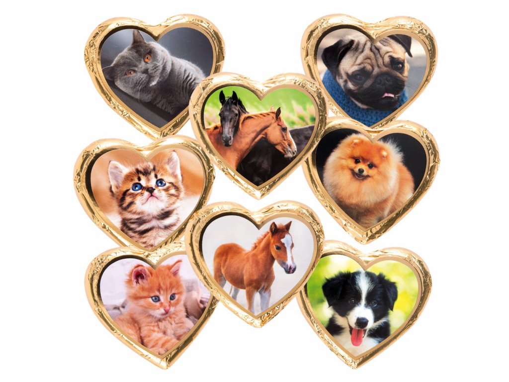 Toto roztomilé čokoládové srdíčko je dokonalým sladkým dárkem nebo potěšením pro milovníky zvířat! Vyrobené z lahodné mléčné čokolády, skrývá uvnitř jemný a krémový nugátový krém, který se rozplývá na jazyku. Povrch srdíčka zdobí detailní obrázek psa, kočky nebo koně, který dodává produktu osobitý a veselý nádech. S váhou 24 g je toto nugátové srdíčko ideální pro drobné radosti během dne nebo jako milá pozornost pro vaše blízké.