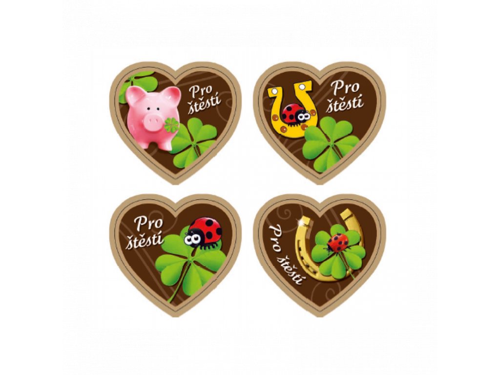 Hledáte milou a originální drobnost, která potěší a přinese štěstí? Naše nugátové srdíčko je tou pravou volbou! Každé srdíčko s váhou 24 g je pečlivě zabalené ve fólii s roztomilým motivem. Vyberte si ze čtyř jedinečných designů: prasátko s čtyřlístkem, podkova s beruškou, samostatná beruška nebo podkova s beruškou na čtyřlístku. Všechny motivy mají společné poselství – "Pro štěstí". Ať už hledáte malý dárek pro blízké, milou pozornost pro kolegy, nebo jen chcete udělat radost sobě, toto srdíčko je ideální volbou. Skvěle poslouží také jako dekorace na svátečním stole nebo jako originální doplněk k dárku.