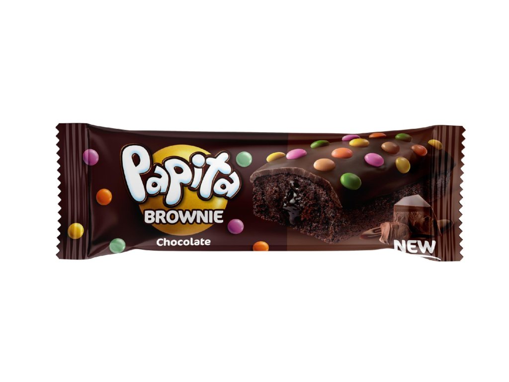 Objevte lahodný Papita Brownie – dokonalou kombinaci nadýchaného čokoládového dortíku, bohaté čokoládové náplně a lahodné čokoládové polevy. Každý kousek je navíc posypaný barevným dražé, které dodává nejen skvělou chuť, ale i hravý vzhled. Perfektní volba pro milovníky čokolády, kteří si chtějí dopřát sladkou chvilku plnou intenzivní chuti! Praktické 40g balení je ideální jako svačinka pro děti, na cesty, do práce nebo jako rychlá sladká odměna kdykoliv během dne.