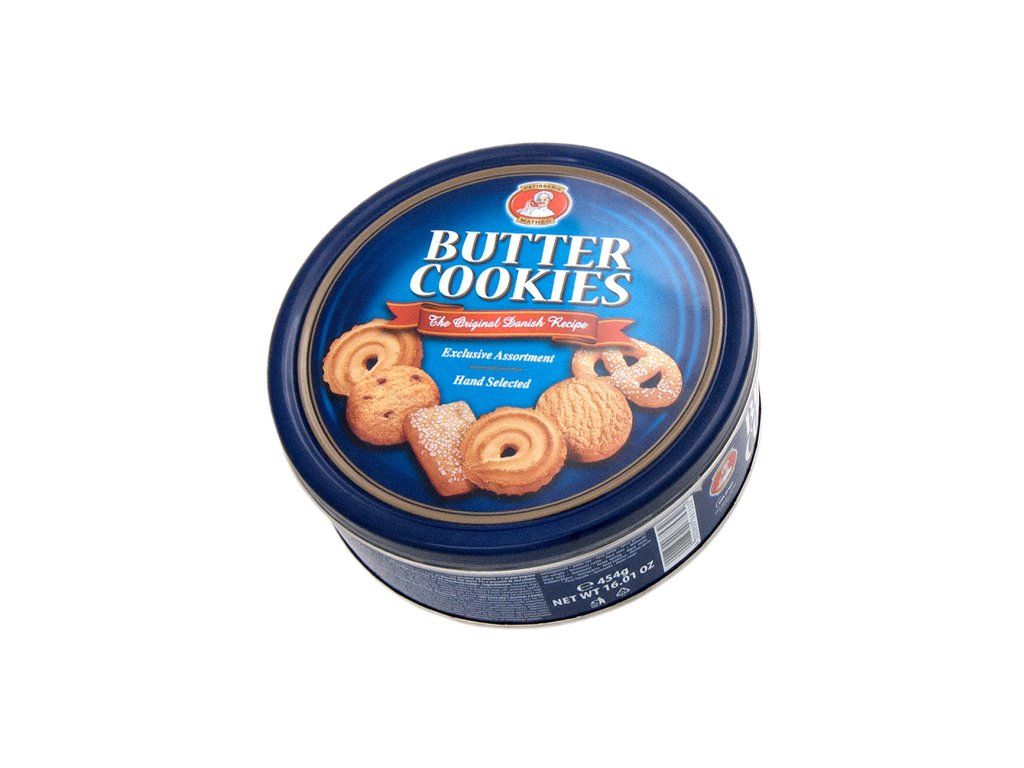 Směs máslových sušenek v plechové dóze