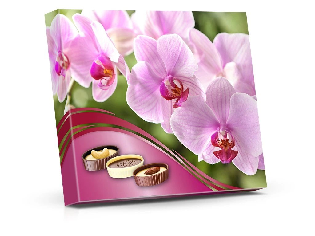• Dokonalý design: Motiv orchidejí symbolizuje eleganci a ženskost, díky čemuž bonboniéra vypadá skvěle i bez dalšího balení.