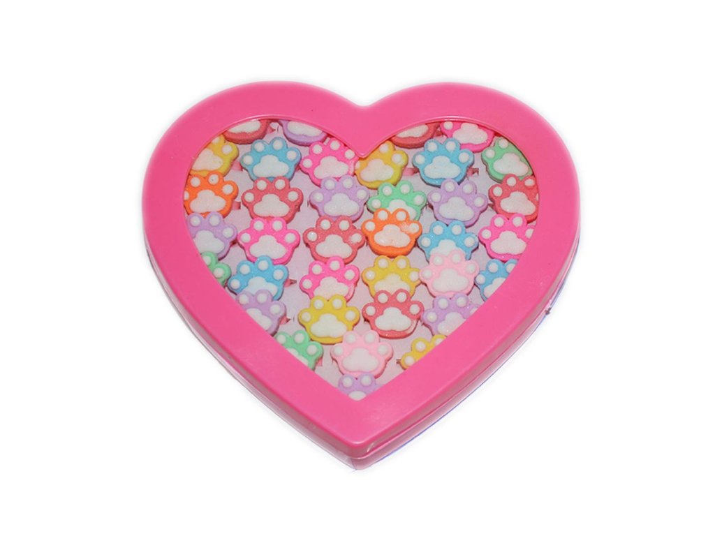 Prstýnky Tlapky v srdíčku bez cukrovinky 36ks ks