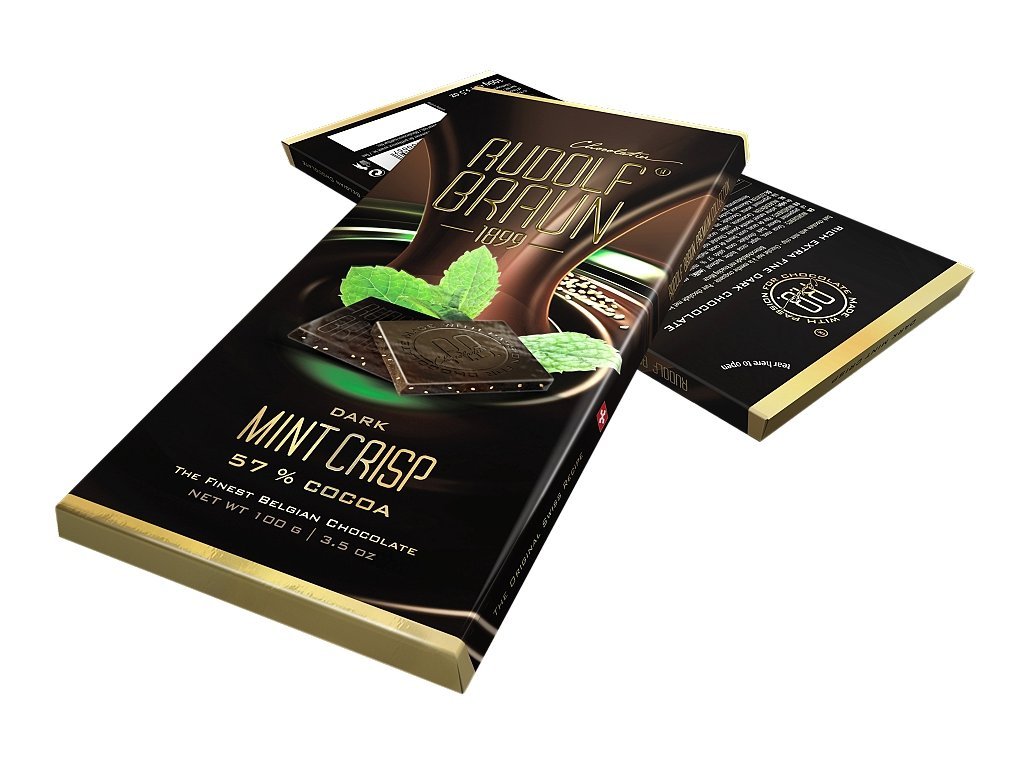 Bohatá jemná hořká belgická čokoláda s mátou a vysokým obsahem kakaa 57%. Čokoláda s mátou je poměrně specifická a tak jako extra hořké čokolády, i čokoláda s mátou se hodí spíše pro ty, kdo ví co od takové čokolády očekávat, nebo touží po novém zážitku. Je příjemná tím, že obsahuje mátové křupinky, a proto potěší nejen ty, kdo mají rádi charakteristickou svěží chuť máty v čokoládě, ale i ty, kterým sedí při konzumaci jemné chroupání