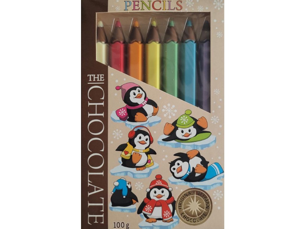 Čokoládové pastelky v krabičce s motivem tučňáků jsou dekorované barevnou čokoládou. Pastelky mají výbornou čokoládu, v balení jich najdete 8 kusů. Pastelky z čokolády jsou skvělým dárkem pro děti každého věku