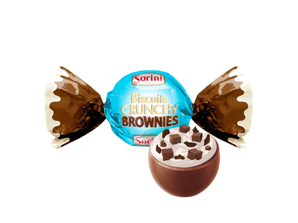 Dopřejte si jedinečný chuťový zážitek, ve kterém se snoubí jemná mléčná čokoláda, lahodný krém a křupavé kousky brownies sušenek. Tyto originální pralinky Sorini Biscuits Crunchy Brownies vás okouzlí nejen svou bohatou chutí, ale i atraktivním provedením. Uvnitř každé čokoládové koule se ukrývá krémová náplň doplněná o drobné křupavé sušenky s kakaovou příchutí, které dodávají dezertu neodolatelnou texturu. Ideální jako sladká tečka po jídle, dárek pro milovníky čokolády nebo jen tak pro radost.