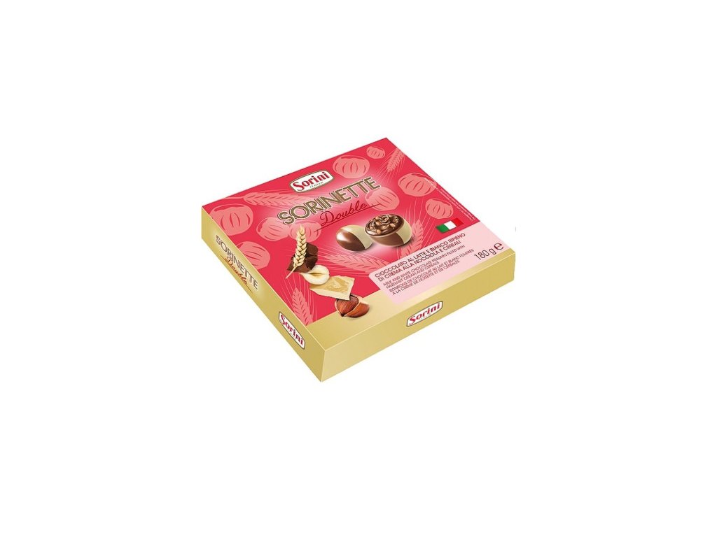 Bonboniéra Sorini Sorinette obsahuje oblíbené double bonbóny. Bílo-mléčné pralinky plněné oříškovým krémem a cereáliemi potěší nejeden mlsný jazýček
