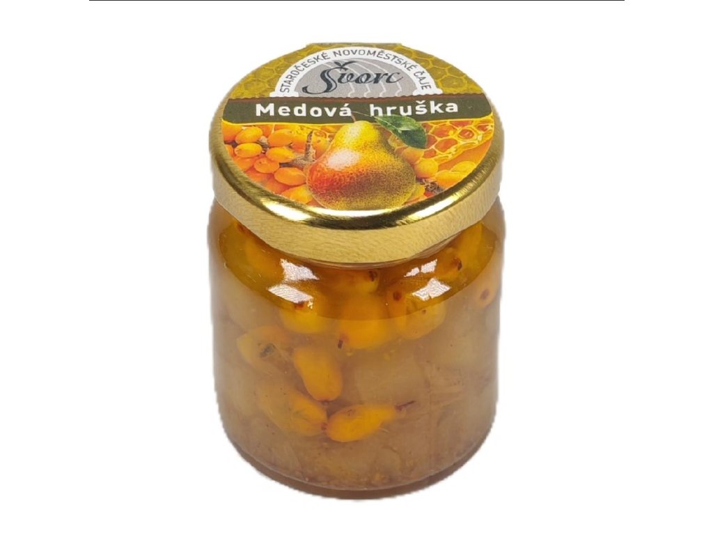 Pečený čaj Švorc s příchutí medové hrušky (60 ml) je lahodná směs šťavnatých hrušek, medu a aromatického koření, která dodá vašemu šálku jedinečnou chuť i vůni. Tento ručně vyráběný čajový koncentrát neobsahuje chemické konzervanty a je připravován tradičním způsobem. Obsahuje minimálně 40 % pevného podílu ovoce a je ideální k zalití horkou vodou pro přípravu voňavého ovocného čaje.