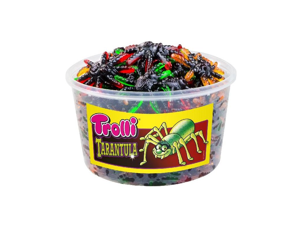 Zábavné, barevné a chuťově výborné – to jsou želé tarantule od značky Trolli! Každý pavouk váží 16 g a přichází ve třech originálních barevných kombinacích: černozelené, černooranžové a černočervené. Díky detailnímu provedení a lákavé ovocné chuti si je oblíbí děti i dospělí. Dóza obsahuje 75 kusů želatinových pavouků a je ideální pro oslavy, párty, dětské akce nebo jako zábavné občerstvení do cukráren a obchodů. Skvělé i do tematických balíčků nebo jako strašidelná sladkost na Halloween.