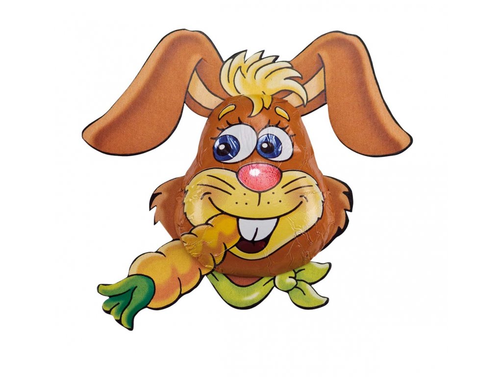 Velikonoční čokoládová figurka zajíčka jako tradiční symbol velikonoc. Tato figurka hlavy zajíčk s mrkvičkou je vyrobena z kvalitní německé čokolády. Figurkou potěšíte malé i velké koledníky, ozdobíte s ním velikonoční sváteční stůl, bude ideální do velikončních kornoutů, košíků. Tato malá, ale o to roztomilejší figurka překvapí svou chutí i krásným designem