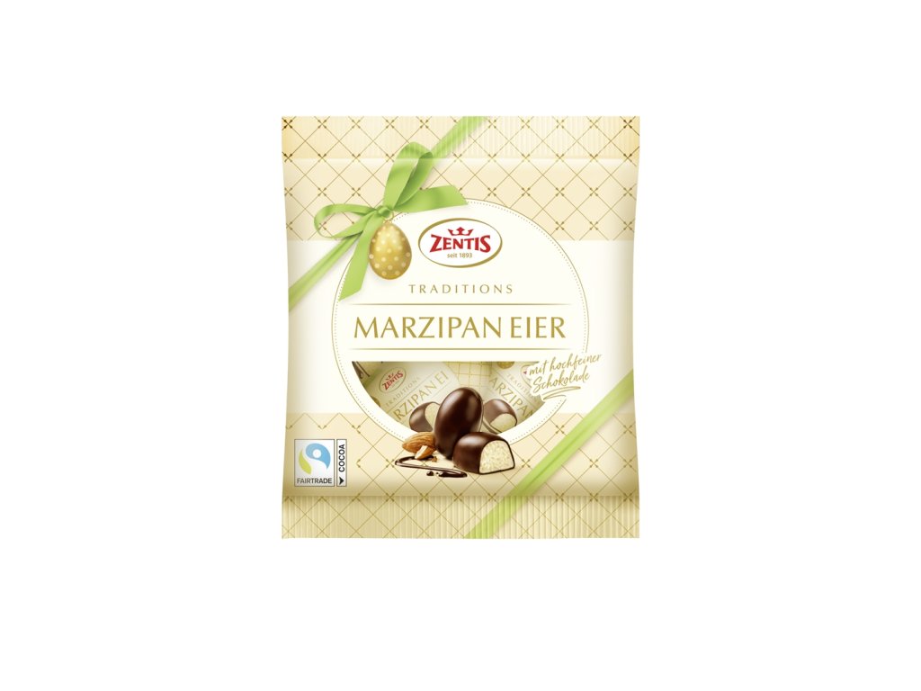 Dopřejte si jedinečný chuťový zážitek s marcipánovými vajíčky značky Zentis. Balení obsahuje 5 větších vajíček (5×20 g), která jsou jednotlivě balená pro zachování čerstvosti. Každé vajíčko je tvořeno jemným marcipánem, obaleným v lahodné hořké čokoládě. Tato luxusní kombinace sladké mandlové hmoty a kvalitní čokolády potěší každého milovníka marcipánu. Ideální jako velikonoční pochoutka